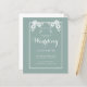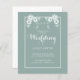 Trate o convite de casamento azul com texto branco e sotaques florais ao longo da borda fina. As cores e o texto são completamente editáveis on-line com alguns cliques, mas se você precisar de ajuda, entre em contato com o designer em ArtByLiz@gmx.com e a placa será personalizada para você sem custo extra.