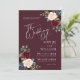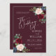 Boho Burgundy e Blush Floral Wedding Convite. Esse convite se caracteriza por boho burgundy e rosas e flores esmagados com duas fontes modernas de alta classe que moldam as tendências dos eventos festivos atuais e futuros.