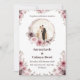 Crie o conjunto de convites de casamento perfeito com este romântico e belo Convite de Casamento Floral com uma composição de flores com rosas em todos os cantos, e com uma foto e moldura de flores no centro, usando algumas fontes de texto elegantes de forma moderna.