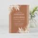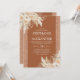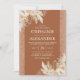Convites de casamento boho elegantes com folhas de palmeira secas em aquarela no deserto, grama das pampas, flores, brilho colorido enferrujado e um modelo de casamento moderno.