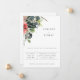 Design de tipografia chique e simples, convite de casamento que apresenta ramos florais de aquarela em tons de azul marinho e coral com folhagem verde fluindo.