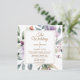 Apresentando nosso convite minimalista e moderado para o casamento, apresentando flores bonito em folhas roxas e verdes claras e mais, com um fundo elegante, criando uma busca limpa e na moda para seu dia especial.
