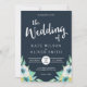 Convide amigos e família para o dia especial com este Convite de Casamento Azul com lindas flores de aquarela. Este convite também inclui um lado traseiro com padrão. Personalize essa data, substituindo o texto do marcador de posição no modelo. Para obter mais opções, como alterar a fonte e seu tamanho, clique no botão "Personalizar". *Observe que a Marca d'água do Zazzle que aparece na visualização de zoom não aparecerá no produto impresso final. © Rosewood e Citrus