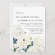 Uma bela escolha em convites para casamento com um popular esquema de cores neutro, esta design apresenta um buquê de flores brancas de aquarela com verde. As flores incluem rosas, híbridos e flores misturadas que combinam um efeito adorável. Os emparelhamentos de texto usados neste design apresentam os nomes da noiva e do noivo com destaque em uma fonte sans serif moderna. Personalize o modelo de texto fácil de usar com seus detalhes de casamento.