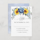 Cartão de confirmação de presença de casamento de verão elegante e moderno com um buquê de girassol, hidrângea e peônias em tons de amarelo, ardósia e azul desbotado com folhas botânicas verdes exuberantes e eucalipto. Encontre mais designs e variações correspondentes na minha loja "blissweddingpaperie". E sinta-se à vontade para entrar em contato comigo para personalização adicional ou itens correspondentes.