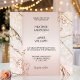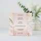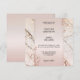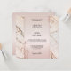 Convite de casamento com um design rosa bege com espirais florais em dourado rosa em um fundo de mármore elegante com brilhos suaves. Este convite tem um cartão de RSVP correspondente.