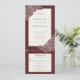 Combinação de convite de casamento com fundo texturizado vermelho de veludo e papoulas desenhadas à mão em branco.