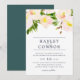 O convite para o casamento floral elegante e moderno apresenta um buquê de flores de aquarela etéreas em tons de rosa-pincel e creme, com sotaques botânicos verdes e exuberantes. Personalize com seus detalhes de casamento em elegante tipografia azul da meia-noite. Cartões invertidos a verde-jasper sólido.