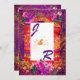 Design brilhante, roxo vibrante e laranja com uma reviravolta para o casal moderno que quer uma expressão única do seu amor. Paisley com ouro e brilho rosa/roxo sobre fundo roxo profundo. Marigold orange, rosa-pincel, framboesa e tons de coral são cores de destaque na fronteira externa, ancoradas por framboesa e flores roxas. A borda interna tem tonalidades de folha de ferrugem, sobrepostas com folhas. Esta adorável design foi criada com as melhores cores de tendências de 2021. Todo texto é totalmente personalizável. A parte de trás tem iniciais monográficas do casal feliz.
