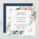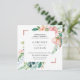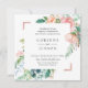Lindas flores de aquarela e folhagem em tons de trendy de rosa, pêssego, branco e verde com sotaques de canto rosa dourado, convite elegante para casamento. A parte traseira da placa apresenta cor sólida de panqueca de mirtilo. Personalizar texto, estilo de fonte, cor e tamanho.