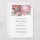 Belamente elegante e popular escolha nas flores para casamentos, este único design de convite para casamento apresenta um arranjo floral de cor d'água de flores e botões exóticos do Rei Protea. As cores incluem cor rosa claro e escuro, burgundy, lacre e cinza prateada. Edite o texto do exemplo com os detalhes do casamento. Pertencente a uma das mais antigas famílias de flores do mundo, a flor da Protea tem associações mitológicas de mudança e transformação. Simbolizando diversidade e coragem, as proteas-rei crescem abundantemente na África do Sul e na Austrália, assim como comercialmente no Havaí e na Califórnia. Estão na estação durante todo o outono, inverno e primavera. Eles fazem um belo sotaque aos buquês de casamento.