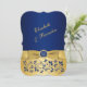CONVITE DE CASAMENTO Floral Dourado, Azul-Frita IM