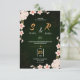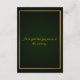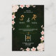 Torne o seu dia de casamento ainda mais especial com este elegante convite de casamento floral. Projetado com um impressionante fundo verde escuro e delicados sotaques dourados, esta placa RSVP adiciona um toque de classe e charme ao seu grande dia. Personalize com seus nomes, detalhes de casamento e notas especiais para os convidados. Por que você ama este: texto personalizável de alta qualidade, premiado e final personalizável & fonts Perfeto para elegantes e com o tema do xúdio Lindos detalhes florais e dourados