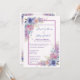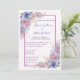 Este é um convite de casamento classicamente belo que apresenta flores românticas em aquarela em azul, roxo e rosa.