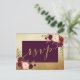 Cartão de RSVP de casamento elegante com moldura e grafia em aquarela floral burgundy e folha de ouro falsa. Elke Clarke © Outras cores disponíveis em www.zazzle.com/monogramgallery. Um RSVP simples, porém versátil, com grafia manuscrita para casamentos ou outras ocasiões especiais, como jantares de ensaio, chás de casal, celebrações de aniversário de casamento.
