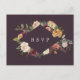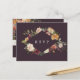 Projetado para combinar com nossa coleção de casamento floral em aquarela Rustic Bloom, este cartão-postal de RSVP botânico elegante apresenta um spray de flores de mum e rosa pintadas em aquarela em tons ricos de outono de marsala, ameixa borgonha, rosa beijo e creme, sobre a data de resposta desejada e a redação personalizada de aceitação e declínio. Um cartão de resposta de casamento chique e elegante para casamentos de outono ou inverno.