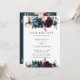 Convite de casamento floral em burgundy, azul mari