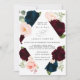 Convite de Casamento Floral em Burgundy, Azul Mari