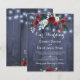 Convite acessível para casamento de inverno, apresentando um buquê floral de rosas vermelhas burgundy e peônias brancas com galhos de pinheiro verde-escuros sazonais, frutos vermelhos e folhagens com cordões de luzes cintilantes sobre um fundo de madeira de celeiro azul-marinho e com uma tipografia moderna e elegante. ++++++++++++ Personalize com seus detalhes e monograma / iniciais dos nomes do casal no verso! ++++++++++ O convite é ideal para casamentos com tema floral rústico de inverno e Natal. ++++++++++ POR FAVOR, LEIA ISSO ANTES DE COMPRAR! Este é um cartão de casamento econômico impresso em uma folha de papel (cada folha tem um cartão). ++++ Para a melhor relação preço-qualidade, nosso conselho é escolher o tipo de papel Semi-Brilho (é grosso o suficiente para ser usado para papelaria) ++++ Se precisar de envelopes, escolha a OPÇÃO DE ENVELOPE. +++ Verifique todas as informações e ortografia do seu texto, pois você receberá exatamente o que vê - ninguém mais verificará nada antes da impressão. ++++ Este cartão foi projetado para o tamanho 4,5 "x 5,6". No caso de escolher outro tamanho do cartão e o texto ultrapassar a página, tudo precisará ser corrigido antes