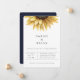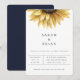 Convite de casamento de girassol em aquarela rústica. Estilo de design de tipografia moderna. Cor de fundo mostrada em azul marinho, pode ser personalizado.