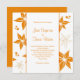 Convite de casamento personalizável com pontos e flores. Laranja e branco.