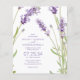 Convites de casamento de jardim de flores silvestres com um fundo branco simples, flores lavanda elegantes e um modelo de convite de casamento que é fácil de personalizar.