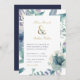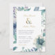 Barato personalizado de convites de casamento impressos personalizados com seus detalhes de evento. Este elegante design apresenta uma folha de papel dourada falso e uma delicada borda floral azul e verde de cor d'água. Use as ferramentas de design para personalizar o texto, editar as fontes e cores ou adicionar suas próprias fotos para criar um convite de casamento de classe e na moda.