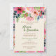 Um design floral com lindas flores vermelhas, cor-de-rosa, cor-de-água. O texto e as cores deste convite podem ser editados. Adicionar texto de acordo com os seus nomes