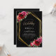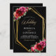Chic vermelho escuro e convite para casamento preto com flores bonitas e folhas verdes. Uma fusão encantadora de elegância e charme gótico. Estes belos convites estão em tons robustos de preto e vermelho. A caligrafia é elegante e chique e pode ser facilmente personalizada. Convites românticos e modernos de casamento floral com cores clássicas que nunca saem do estilo.