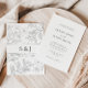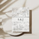 Anuncie o seu dia especial com este Convite de Casamento Floral Preto Minimalista, apresentando arte de contorno botânico elegante e um layout moderno e limpo. Concebido para casais que amam sofisticação atemporal, este convite de casamento frente e verso inclui um design frontal refinado e um verso elegante com as iniciais personalizadas do casal para um toque pessoal. Perfeito para temas de casamento preto e branco, celebrações modernas e conjuntos de papelaria floral clássica. Totalmente personalizável com nomes, data, local e texto para criar um conjunto de convites polido e coeso.