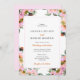 Celebre o seu amor com este vibrante Convite Floral Rosa, que apresenta uma fina borda aquosa de flores florescentes em tons cor-de-rosa suave, laranja e verdes. A fonte serif clássica contrasta maravilhosamente com os sotaques elegantes em terracota quente, criando uma estética alegre mas refinada. Este convite é ideal para casamentos de primavera, verão ou jardins, oferecendo um tom quente e convidativo que se adapta a eventos casuais e elegantes. Impresso em papel premium, é uma combinação perfeita de sofisticação e charme. Principais recursos: borda floral em cor-de-rosa e laranja nas florais Elegante serif típico combinado com o moderno script cursivo Layout in-a-box Central com o quadro cor-de-rosa suave "Celebração de Casamentos" e "Recepção a Seguir" no Excelente de letra de acento para jardim romântico, boêmia ou casamentos ao ar livre animados