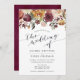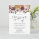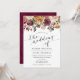 Os convites para casamentos florais elegantes ou quedas ou casamentos no inverno apresentam os seus detalhes representados por um spray de rosas de aquarelas, mães e verde em cores rústicas do outono, incluindo pêssego, marfim, blush, burgundy e verde.