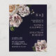 Convite de Casamento Azul-Marinho com Monograma e Flora Moody Tudo em Um... Nosso exclusivo e acessível convite de casamento floral "Tudo em Um" apresenta buquês de flores moodys emoldurando seu monograma e texto do convite... tudo isso sobre um fundo de azul-marinho escuro e rico. Com suas belas flores creme e malva, esses buquês pintados a óleo criam uma ilustração perfeita para um casamento de outono ou noturno. O verso do convite contém todos os detalhes que você normalmente veria em cartões separados no pacote de casamento. Esse convite de casamento de estilo moderno foi projetado para ser elegante e econômico... sem falar em economizar tempo. No verso, há também um modelo de código QR que você pode substituir pelo seu próprio código (ou excluir se não planeja usá-lo). Todo o texto de exemplo pode ser facilmente revisado com suas próprias informações no modelo de personalização.