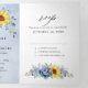 Elegante e moderno convite de casamento de verão apresenta um buquê de girassol de aquarela, hortênsias e peônias em tons de amarelo, ardósia, azul empoeirado com folhas botânicas verdejantes e eucalipto. Encontre mais designs e variações correspondentes na minha loja "blissweddingpaperie". E sinta-se à vontade para entrar em contato comigo para mais personalização ou itens correspondentes.
