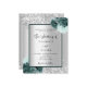 Fundo de aspecto fino prateado decorado com flores verdes, flores e brilho fino prateado, brilhos. Personalize e adicione seus nomes e detalhes do casamento. Letras negras.