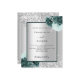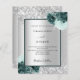 Fundo de aparência pura prateada decorado com flores verdes, flores e confete prateado falso. Personalize e adicione seus nomes e detalhes do casamento. Letras negras.