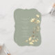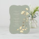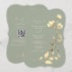 Este convite de casamento com forma única apresenta um fundo verde sage suave com flores silvestres douradas pintadas à mão e detalhes botânicos. A caligrafia romântica e o layout inspirado em boho tornam-no perfeito para casamentos rústicos, de jardim ou ao ar livre elegantes.