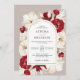 Uma mistura refinada de rosas vermelhas rubi e delicadas flores brancas,