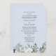 Convite de Casamento Formal com Flores em Azul Poeira para Duas Localizações para Ambos os Pais. Azul e flores brancas.