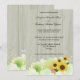 Este design popular apresenta um fundo de madeira falsa acentuado por girassóis amarelos e redemoinhos inspirados no estilo retrô. Há muito texto personalizável para você adicionar as informações da sua festa. Mostrado aqui como um convite de casamento formal, este design versátil pode ser personalizado como um convite de aniversário, convite de aniversário de casamento, convite de chá de bebê ou até mesmo um anúncio de formatura ou convite de festa! O verso deste design elegante tem o mesmo gráfico. Por favor, note: Este é um design impresso que foi criado intencionalmente para fornecer um efeito tridimensional. Compre em quantidade para aquela celebração especial.