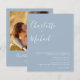 Com nomes de estilo de assinatura, este elegante convite de casamento azul poeira orçamento pode ser personalizado com suas informações em letras elegantes e sua foto especial no verso. Projetado por Thisisnotme©