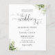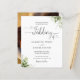 Este elegante convite de casamento preto e branco econômico com folhas verdes pode ser personalizado com os detalhes da sua celebração em tipografia chic e sua foto especial no verso. Criado por Thisisnotme©