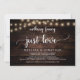 Linda festa de celebração de amor sem luxo, cartão de anúncio / convite de casamento fuga, em design de madeira rústica de fazenda com luzes de corda. Isto é perfeito para o seu casamento e festa de celebração pós-casamento. Adicione seus detalhes em fonte / letra correspondente.