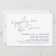 Este é o cartão de convite da festa de casamento à fuga, com design minimalista de texto em Azul Naval (Convite para Jantar Felizes para Sempre).
