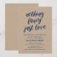 Este é o convite de casamento moderno simples rústico azul marinho com caligrafia, tema Kraft marrom, cartão de convite de casamento fugitivo (Nada de luxo, apenas amor). Um cartão perfeito para convidar sua família querida e convidados para o anúncio do seu casamento e celebração da festa de recepção. Adicione os detalhes da sua celebração na fonte / letra correspondente.