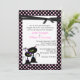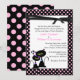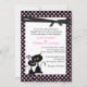Convite de casamento fofo feito em preto divertido, com fundo de bolinhas rosa. Uma área de texto branca sobre o fundo é decorada com gráficos de desenho animado adoráveis de dois gatos pretos amorosos e uma fita preta dupla no topo. Todo o texto é personalizável para atender às necessidades do seu casamento. Convite de casamento encantador para amantes de gatos para o casal que ama diversão.