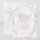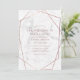 Este convite de casamento elegante combina simplicidade moderna com charme sofisticado. Com um fundo de mármore e delicados acentos geométricos em dourado rosa, é perfeito para casais que desejam uma estética elegante e contemporânea. Adequado para casamentos de primavera, verão, outono ou inverno, este convite captura um estilo atemporal com um toque de luxo, preparando o cenário para uma celebração memorável.