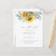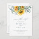 Um convite de casamento floral rústico save the date com buquê de girassol aquarela e eucalipto. Clique no botão editar para personalizar este design.