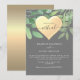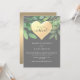 Convite de casamento cinza zoom elegante e moderno com verde água rustico e coração de folha dourada. Escolha perfeita para celebração de casamento virtual moderna e romântica.