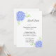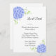 Este convite para o casamento é mostrado em um layout clássico em uma cor branca de fundo com uma adorável impressão de arte azul hydrangeas. O texto está em um script preto. Personalize este item, retire o texto de exemplo e coloque suas informações.